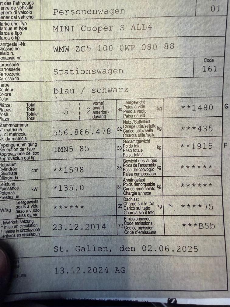 Gepflegter Countryman , Sommerräder 18" Keskin , Winterräder, alle Reifen sehr gut, Auto fährt einwandfrei, wir hatten das Auto auf dem Lift und für die MFK müsste man die Dichtung vom Ölfiltergehäuse ersetzten oder Motor waschen , der Rest scheint in Ordnung zu sein. Ohne Gewähr. Kleine Kratzer und Steinschläge sind vorhanden aber absolut im Rahmen für dieses Alter. Am Fahrzeug wurde kein Werkstatttest gemacht (für sichtbare oder nicht sichtbare Mängel wird nicht gehaftet). Wir haben nicht alle Funktionen vom Fahrzeug getestet und geprüft. Das Risiko liegt somit vollumfänglich beim Käufer. Nach erhalt des Zuschlags gibt es keine Nachverhandlung, auch wenn nicht deklarierte Mängel zum Vorschein kommen. Ab Platz ohne Garantie oder Gewährleistung, Wandelung und Minderung werden wegbedungen.