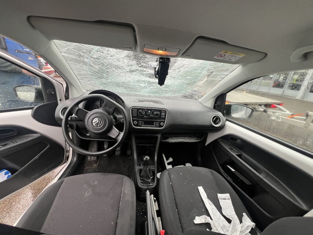 Frontverkleidung leicht beschädigt. Motorhaube und Dach vorne eingedrückt. Frontscheibe grossflächig gebrochen. Diverse Carrosserieschäden gem. Bilder. Motor Getriebe Vorderachse Hinterachse Airbags ausgelöst: 0 unbekannt ( Abfallcode 16.01.04ak )