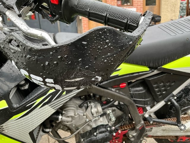 Rechte Seite beschädigt. Verschalung oben rechts verkratzt.