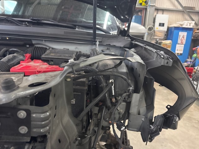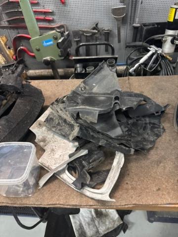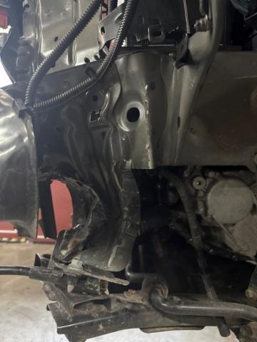Vorderachse ist beschädigt. Aufhängungsteile vorne links beschädigt. Risiko Lenkung. Motoraufhängung/Aggregateträger ist beschädigt.