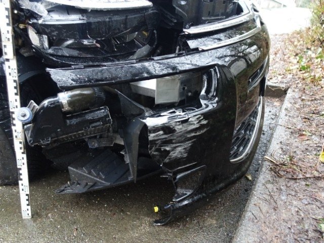 Stossfänger vorne rechts + Nebelscheinwerfer vorne rechts + Grille — Luftführung — Scheinwerfer rechts — Kühler vorne rechts — Kotflügel vorne rechts + Joue d’Aile vorne rechts — Rad vorne rechts- Federung + Richtung vorne rechts — Bas de caisse rechts.