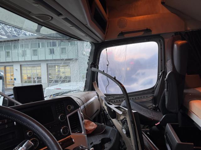 Windschutzscheibe ist gerissen. Türscheibe vorne rechts ist zerbrochen / beschädigt.