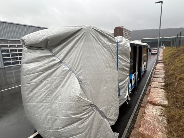 Batterie und Billetautomaten werden ausgebaut. Folierung wird entfernt. Fahrzeug wird weiss abgegeben.