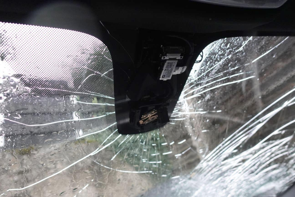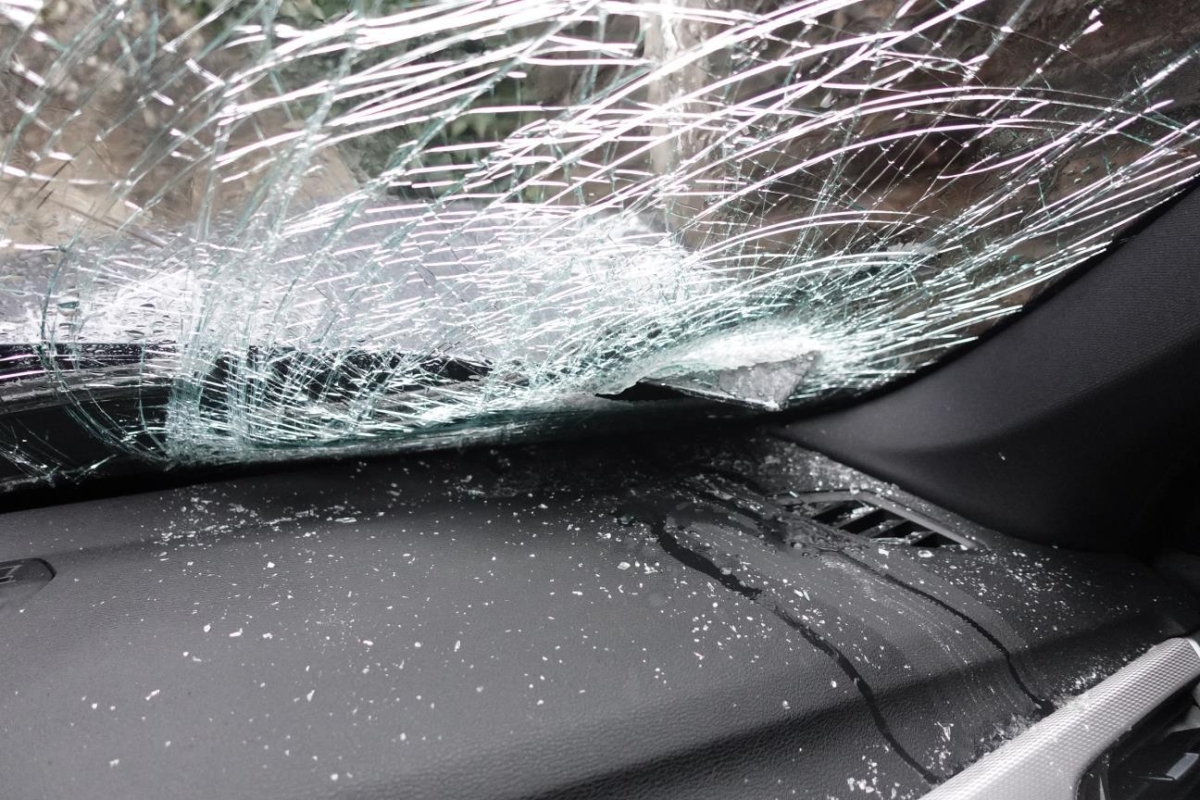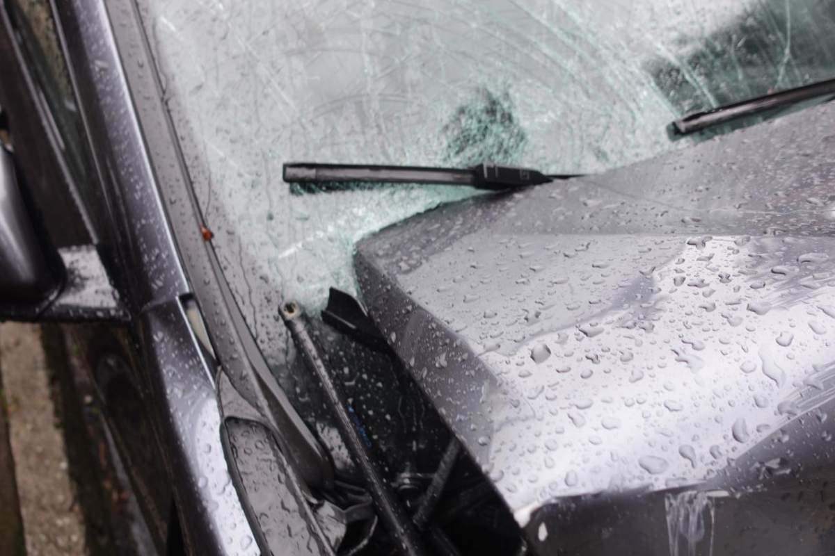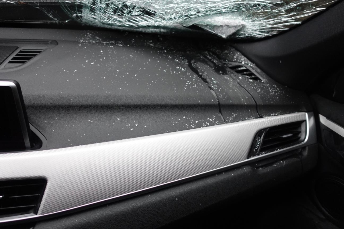 Le véhicule a subi un choc inférieur. ATTENTION : Le véhicule ne démarre pas, batterie faible et verrouillage du capot bloqué. Essieu avant endommagé