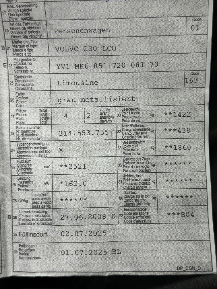 VOLVO C30 2.5T 220PS MFK 2025