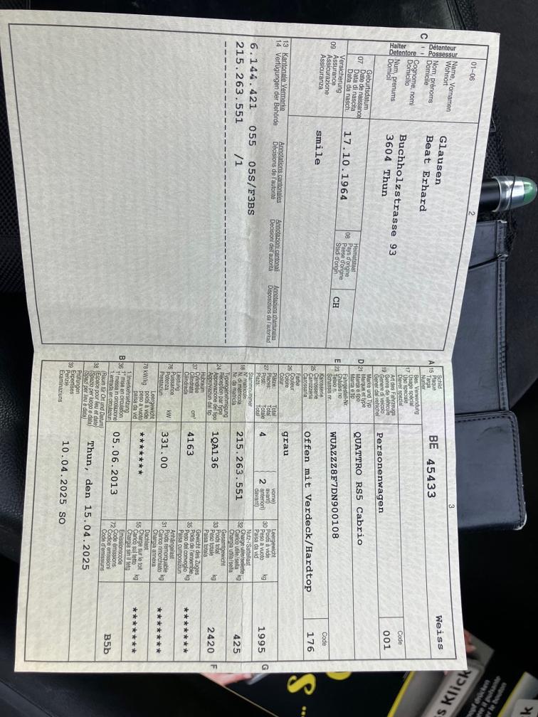 Mögliches Eintauschfahrtzeug. Keine technische Prüfung. Gemäss Sichtprüfung und Kundenaussage ist der RS5 technisch und optisch in einem einwandfreiem Zustand. Keine bekannten Mängel und regelmässig gewartet. Verfügbar ab Mitte März 2026.