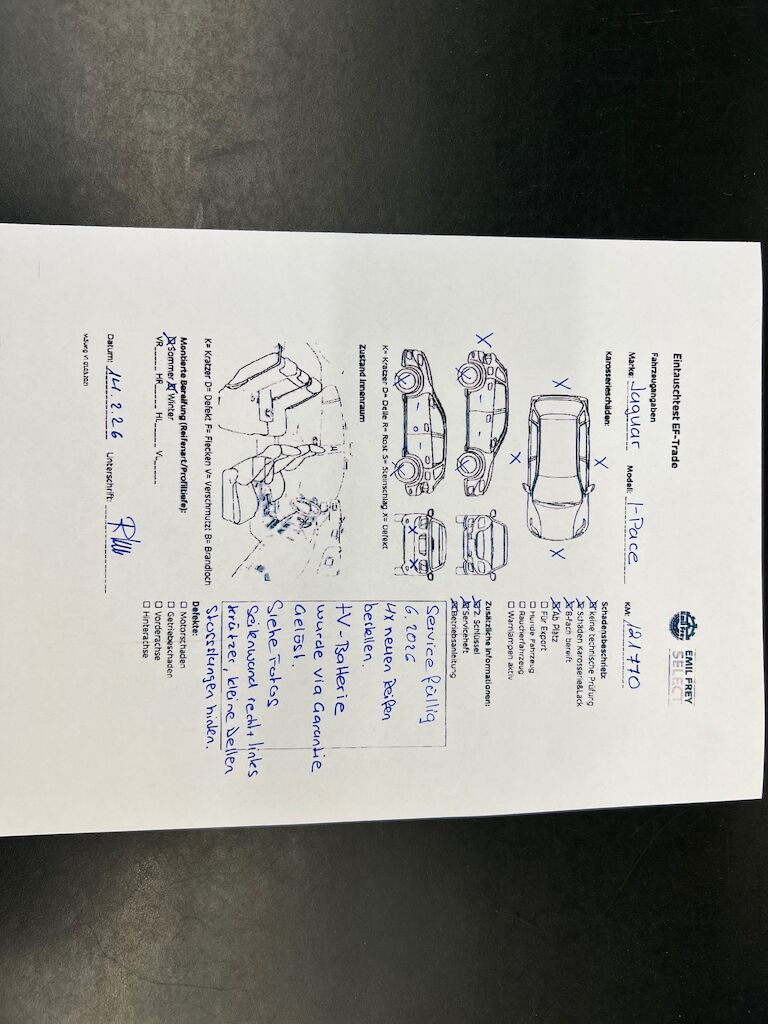Siehe Fotos: Seitenwand rechts und links Kratzer, kleine Dellen Türe. Service fällig 06.2026, 4 Neue Reifen braucht das FZ, HV-Batterie wurde über die Garantie Gelöst, Batterie IO. Stossstangen hinten und Vorne. Motor Getriebe Vorderachse Hinterachse Airbags ausgelöst: 0 unbekannt ( Abfallcode 16.01.04ak )