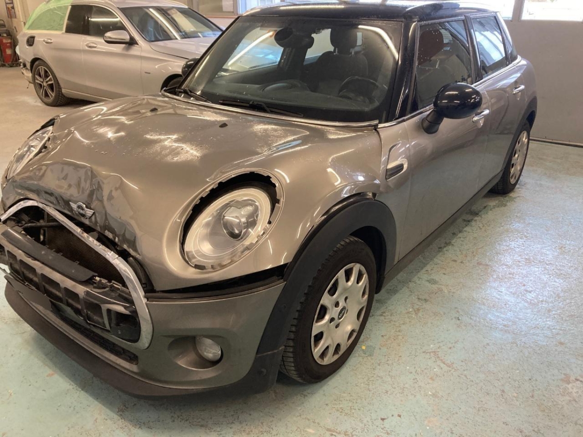 Lenkrad: Lenkrad längs- und höhenverstellbar, Drehzahlmesser, Kopfstützen hinten, Klimaanlage, Licht: Nebelschlussleuchte, Ablagefach, Dekor: Interieuroberflächen Hazy Grey, Traffic Information, Türgriffe aussen verchromt, Einstiegsschienen, Leuchtweitenregulierung elektrisch, Ablagenpaket, Dachspoiler, Laderaumbeleuchtung, Crash-Sensor, Dachhimmel in grau, Elektronischer Bremskraftverteilung EBD, Türgriffe innen verchromt, Intelligenter Notruf, Licht: Abblendlichtausschaltverzögerung 'Follow me home', MINI Mobility System, Heckscheiben-Wisch-/Waschanlage mit, 3-Punkt-Sicherheitsgurte auf allen Plätzen, Polster: Stoff-Ausstattung, Veloursfussmatten vorne und hinten, Cupholder, Heckscheibenheizung, Cornering Brake Control (CBC), Wegfahrsperre elektronisch, Airbag Beifahrer deaktivierbar, Licht: Halogenscheinwerfer, Start/Stop-Funktion, 12-Volt-Steckdose vorne, Dekor: Colour Line Carbon Black, ISOFIX Kindersitzvorrichtung, Gurtstraffer vorne, Sitze: Rücksitzlehne geteilt abklappbar, Dynamische Stabilitätskontrolle (DSC), Lackierung: Uni-Lackierung, Bordcomputer, Elektrische Fensterheber vorne, Befestigungsösen im Laderaum, Servotronic, Reifendruck-Kontrollanzeige, Verbandskasten, Abschliessbare Radschrauben, Nichtraucherausführung, Start-/Stop-Knopf, Media: USB-Anschluss, Airbag: Airbag Fahrer und Beifahrer, Antiblockiersystem (ABS), Katalysator geregelt, Licht: Tagfahrlicht, Leichtmetallräder Heli Spoke 15J, silber, Getriebe: 6-Gang-Getriebe, Aussenspiegel in Wagenfarbe, Drittes Bremslicht, Zentralverriegelung mit Fernbedienung, Aux-In Anschluss, Innenraumbeleuchtung, Dynamische Bremsleuchten, Sitze: Vordersitze höhenverstellbar