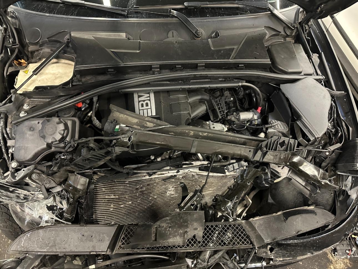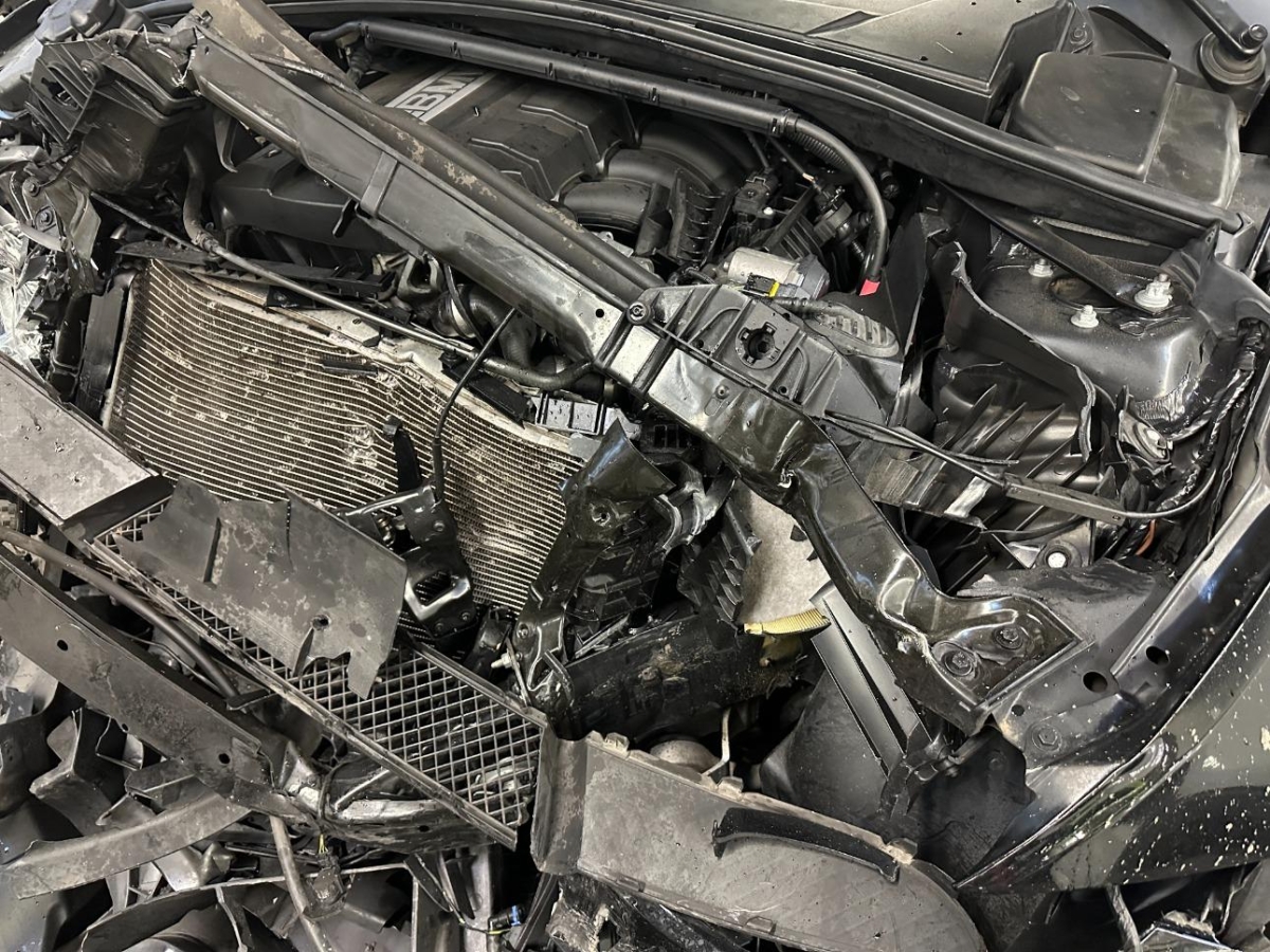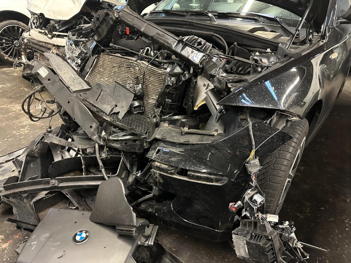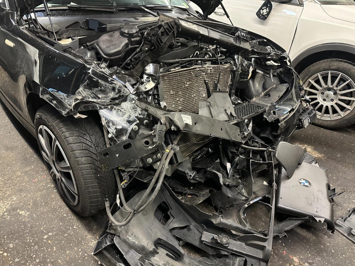 Airbag ausgelöst, Armaturenbrett, Front, Front links, Front rechts, Frontblech, Frontscheibe, Gurtstraffer ausgelöst, Kabelstrang, Klimakühler, Kotflügel links, Kotflügel rechts, Kühler, Kühlgitter, Motorgehäuse, Motorhaube, Scheinwerfer links, Scheinwerfer rechts, Schlossträger, Stosstange vorne