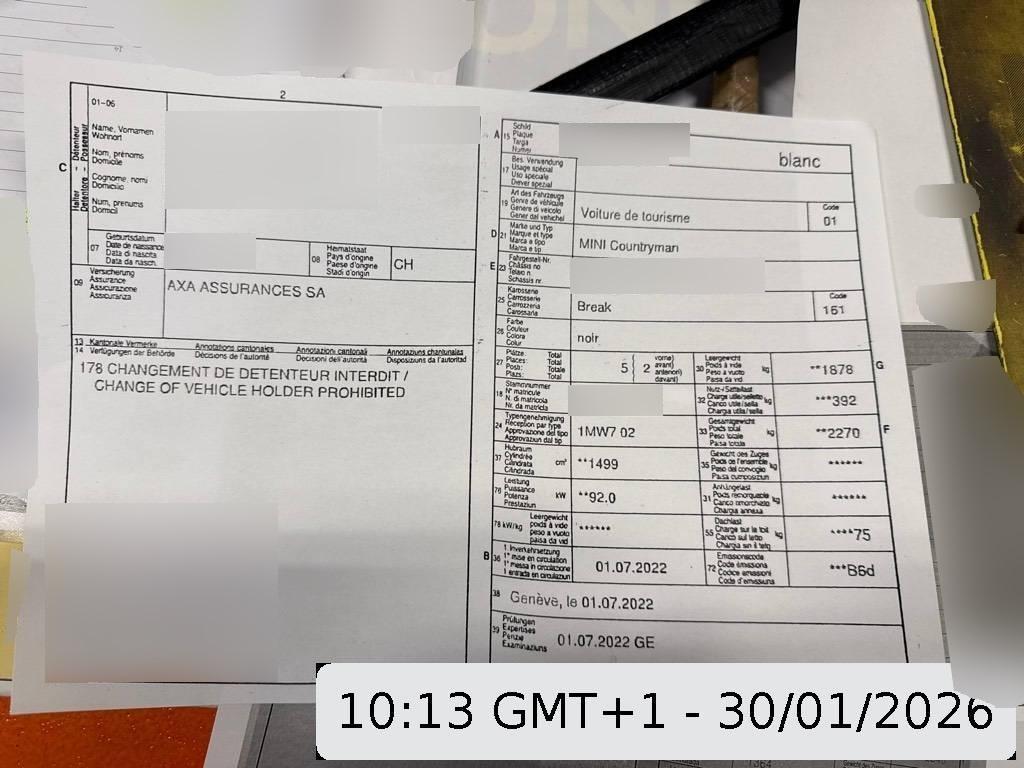 Ablagefächer in den Türverkleidungen und in der Mittelkonsole, Zentralverriegelung mit Fernbedienung, Dachspoiler, Drehzahlmesser, Getränkehalter, 2 vorne, Bremsenergie-Rückgewinnung, Laderaumabdeckung, Licht: LED Scheinwerfer mit erweiterten Umfängen, Aussenspiegel rechts und links beheizbar und elektrisch verstellbar, Aussenspiegel in Wagenfarbe, Bremsassistent (BAS), Getriebe: 6-Stufen-Automat sequentiell, Dynamische Traktionskontrolle (DTC), Lenkrad: Lenkrad längs- und höhenverstellbar, Sitze: Vordersitze höhenverstellbar, Airbag: Seitenairbag für Fahrer und Beifahrer, Auto Start-/Stop-Anlage, Verbandskasten, Media: DAB+ (Digital Audio Broadcasting), Radschraubensicherung, Dynamische Bremsleuchten, Antiblockiersystem (ABS), Airbag: Kopfairbag vorne und hinten, Sitze: Beifahrersitz höhenverstellbar, Polster: Stoff Firework, Katalysator geregelt, Garantie: 3 Jahre oder 100 000km Gewährleistung (Es gilt das zuerst erreichte), Durchladesystem, Dekor: Colour Line Carbon Black, Reifendruck-Kontrollanzeige, Türöffner innen, verchromt, Klima: 2-Zonen-Klimaautomatik, Intelligenter Notruf, Assist: Driving Assistant - Beinhaltet aktive Geschwindigkeits- und Abstandsregulierung, Fernlichtassistent, Verkehrszeichenerkennung und Personen- und Auffahrwarnung mit Abbremsfunktion., Battery Certificate, Regensensor für Scheibenwischer vorne, Sonnenblende Fahrer und Beifahrerseite mit Spiegel, Räder: Abschliessbare Radschrauben, Licht: Weisse Blinkleuchten Zusatzblinkleuchten, in Seitenwand vorne in Weiss, Crash-Sensor, Chromrahmen um Scheinwerfer und Rückleuchteneinheit, Cockpitleiste inkl. Cockpitakzentleiste in Hazy Grey, Bremsbelag-Verschleissanzeige, Innenraumbeleuchtung mittig im vorderen und hinteren Dachhimmel integriert, inklusive Leseleuchten rechts und links., Handschuhfach, Steckdose 12V, Dachhimmel in Satellite Grey, Lenkrad: Multifunktion für Lenkrad, Licht: Tagfahrlicht, Warndreieck, Wegfahrsperre elektronisch, Dynamische Stabilitätskontrolle (DSC), Media: Bluetooth Freisprecheinrichtung, Lackierung: Metallic-Lackierung Moonwalk Grey, Einstiegsschienen mit Logo, Start-/Stop-Knopf, 3-Punkt-Sicherheitsgurte auf allen Plätzen, Elektronische Parkbremse, Media: Radio MINI Visual Boost - 8,8"-Display, Bildschirmradio mit AM/FM, Antennen-Diversity, Freisprecheinrichtung Bluetooth MINI Connected. Kein internes CD-Laufwerk. Bedienung über MINI Controller in der Mittelkonsole. Inkl. DAB+ Tuner und 6 Lautsprechern mit insgesamt 150 Watt Ausgangsleistung., Servotronic, Licht: Nebelschlussleuchte, Chromleiste an der Unterkante aller Scheiben, umlaufend, Ladekabel, Pollenfilter (Staubfilter), MINI Driving Modes - Auswahl verschiedener Fahrmodi: SPORT, MID und GREEN mit unterschiedlichem Einfluss auf Ambientebeleuchtung, Ansprechverhalten von Lenkung und Gaspedal, Anzeigen im Radiodisplay oder Bildschirm., Media: USB-Anschluss, ISOFIX Kindersitzvorrichtung, Sitze: Rücksitzlehne, umklappbar im 40:20:40 Verhältnis inkl. Ausklappbare Armlehne mit zwei Cupholdern, Cornering Brake Control (CBC), Paket: Lichtpaket, Bordcomputer, Türgriffe aussen verchromt, Fensterheber elektrisch Komfortöffnen und -schliessen aller Fahrzeugfenster über Funkfernbedienung, Airbag: Airbag Fahrer und Beifahrer, Akustischer Fussgängerschutz, Scheibenwaschdüsen beheizt, Elektronisches Stabilitäts-Programm (ESP), TeleService, Elektronischer Bremskraftverteilung EBD, Licht: LED Nebelscheinwerfer - Inkl. Positionslicht in LED-Technik., Colour Line Carbon Black, Dach in Wagenfarbe