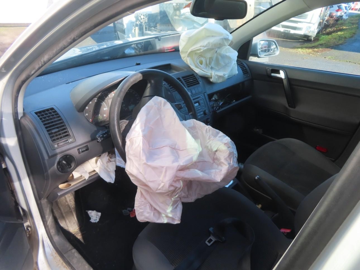 Le véhicule a subi un choc avant gauche. Airbags déclenchés.