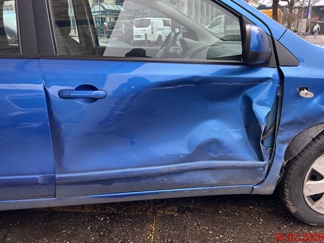 Beschreibung der Schäden: Seitenschaden ganze rechte Seite. Risiko Radaufhängung VR. Vorbestandene Schäden: Hinten rechts: St.St.HR Anfahrschaden. Vorne links: St.St.VL grossflächig zerkratzt. Hinten links: Radlauf HL Streifschaden, Kratzer. Türverkleidungen Stoff lose / wellig. Fahrzeug weist dem Alter- und der Laufleistung entsprechende Gebrauchsspuren und Kratzer auf.