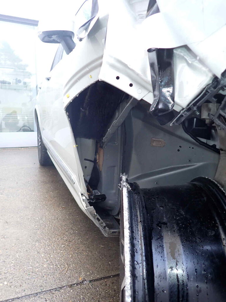 Anprall vorne rechts, dabei wurde der Kotflügel, Stossstange , Scheinwerfer, Radhaus und die Achse VR beschädigt Motor Getriebe Vorderachse Hinterachse Airbags ausgelöst: 0 unbekannt ( Abfallcode 16.01.04ak )