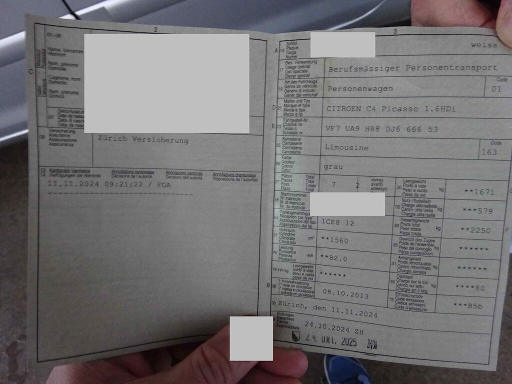 - Schweizer Typenschein. Wurde als Taxi benutzt. Wird OHNE Taxiausrüstung verkauft.- Diesel, 7-Sitzer, Klima, Stop-Start, etc..- Vorschaden: Div. Gebrauchsspuren innen wie aussen.