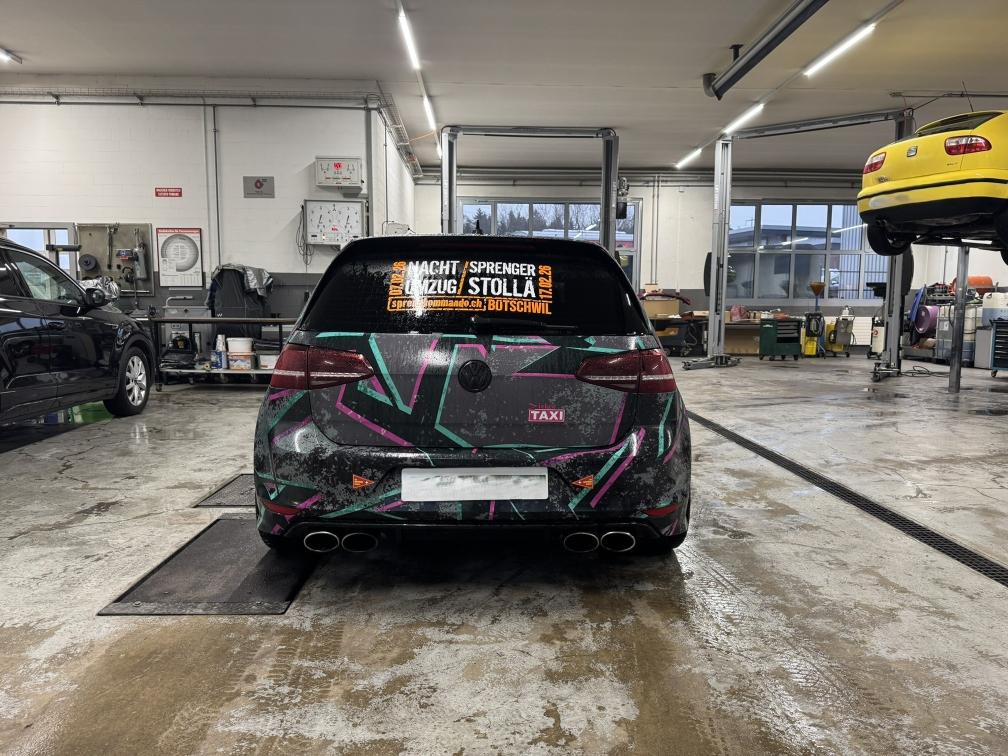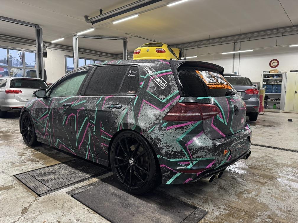 - Grundfarbe des Fahrzeugs ist schwarz. Alles foliert, daher können wir den Lack nicht einschätzen! - Felgen sind teilweise angefahren. - 2 Sommerpneus müssen ersetzt werden. (gem. Kunde) - Sommerfelgen sind Originalfelgen und wurden umlackiert. - Es könnte noch eine Leistungssteigerung vorhanden sein. Hier sind keine Unterlagen vorhanden. - Gemäss Kunde wurden alle Tuningteile eingetragen. Einige Teile müssten für MFK demontiert werden. - Fahrzeug noch im Kundenbesitz - Kein Eintauschtest durchgeführt - keine Nachverhandlung und / oder Nachwährschaft - Fahrzeugkarosserie div. Gebrauchsspuren aussen gemäss Fotos