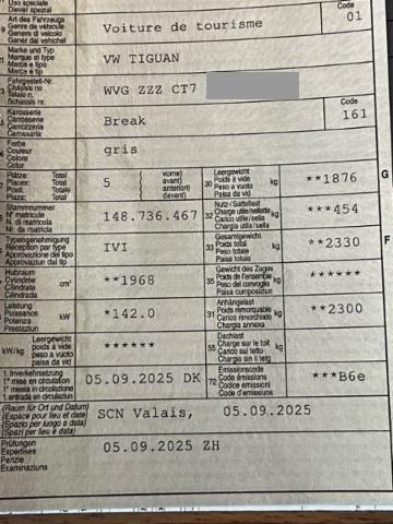 Textilfussmatten vorne + hinten Höhenverstellbare Vordersitze Airbag Fahrer und Beifahrerseite Kindersitz-Vorbereitung Isofix Innenspiegel automatisch abblendbar Regensensor Lenksäule mit Höhen- und Längseinstellung Automatische Distanzregelung ACC Zentralverriegelung mit Funkfernbedienung Aussenspiegel elektrisch verstellbar und heizbar Elektrische Fensterheber vorne + hinten Sportsitze vorne Lendenwirbelstützen Vordersitze Deaktivierung Beifahrerairbag Aussenspiegel elektrisch anklappbar mit Memory Mittelarmlehne vorne ESP/ EDS/ ASR/ ABS/ BA Auto-Hold-Funktion Reifenkontrollanzeige RKA Rückfahrkamera Rücksitzbank und -lehne asymmetrisch geteilt umklappbar Dachreling silber eloxiert Spurwechselassistent Side Assist Dieselpartikelfilter Elektronische Parkbremse ParkPilot vorne + hinten Multifunktions-Sportlenkrad 3-Speichen Adaptive Fahrwerksregelung DCC Tire mobility system LED Heckleuchten Spurhalteassistent Lane Assist Kopfairbag vorne und hinten inkl. Seitenairbag vorne Elektronische Differentialsperre XDS Stop + Start System mit Brems-Energie-Rückgewinnung Fernlichtregulierung Light Assist Klimaanlage Climatronic 3-Zonen Details siehe gültige Preisliste des Importeurs Verkehrszeichenerkennung Müdigkeitserkennung Keine Gewähr auf die Angaben der Serienausstattungen Digitaler Radioempfang DAB+ Fahrprofilauswahl Security & Service/ Notruf LED-Plus-Scheinwerfer Schlüsselloses Startsystem Keyless Start Massagefunktion vorne We Connect Wireless App Connect Digital Cockpit Pro USB-C Anschluss Leichtmetallräder 19" Coventry Multifunkitonskamera Park Assist Plus