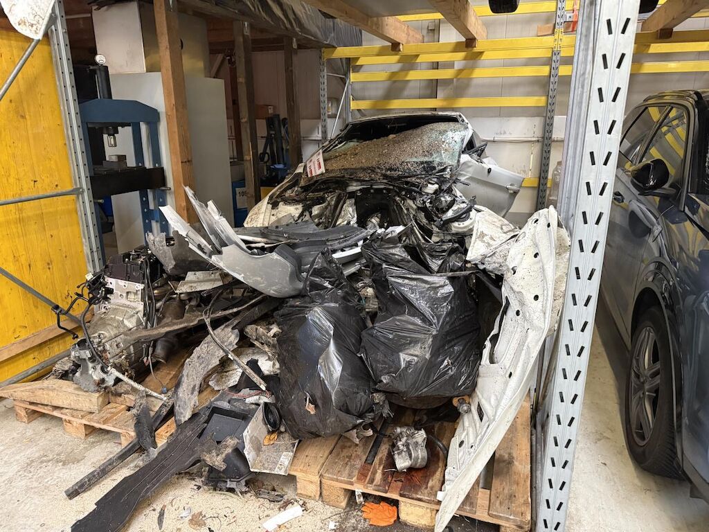 Fahrzeug ringsum beschädigt, gemäss Fotos Motor Getriebe Vorderachse Hinterachse Airbags ausgelöst: 6 Ja ( Abfallcode 16.01.04ak )