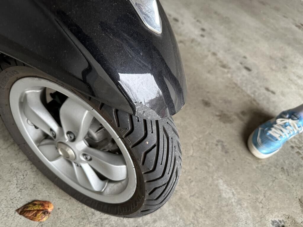 Eigentlich hat es auf der gesamten linken Seite diverse Kratzer und Beulen am Lack und den Plastikteilen. Auch die verchromten Teile um die Vespa sowie Sattel, Top Case, Antriebsdeckel, Bremshebel und Rückspiegel wurden in Mitleidenschaft gezogen. Rechte Seite Rahmen, Spiegel rechts, Bremshebel rechts, Trittbrett, Schutzblech vorne Motor Getriebe Vorderachse Hinterachse Airbags ausgelöst: 0 unbekannt ( Abfallcode 16.01.04ak )