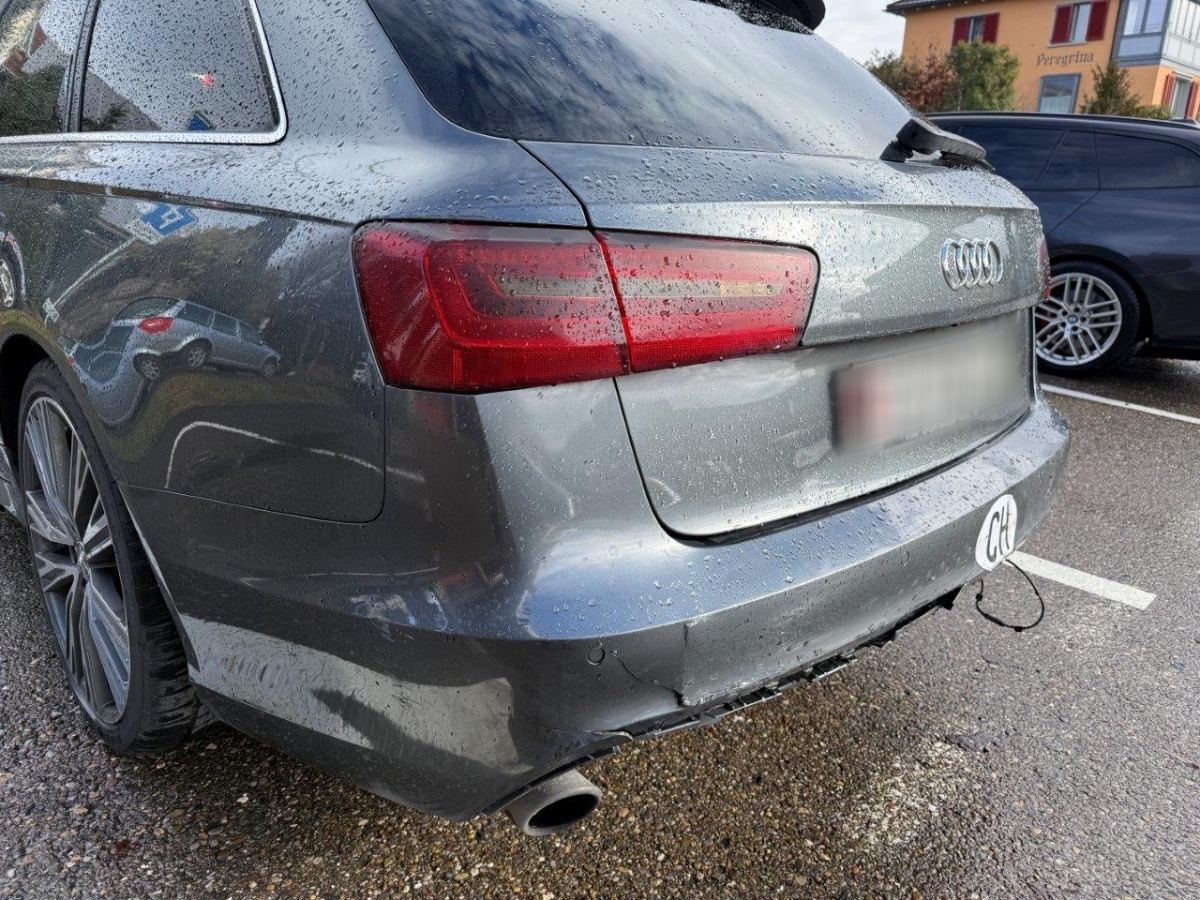 Anprall hinten: Dabei wurde die Heckklappe, die Stossstange, der Diffusor, die PDC-Sensoren mit Kabel, das Heckblech, der Träger, das Bodenblech, das Ersatzrad, der Endschalldämpfer sowie diverse Anbauteile beschädigt