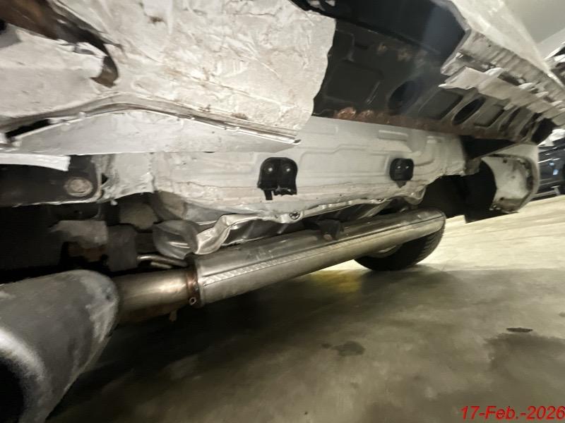 Beschreibung der Schäden: Der Heckdeckel, das Heckblech, der Kofferboden, der Stossstangenträger, die Auspuffanlage sind deformiert. Die Stossstange hinten ist gerissen. Der Fussgängerschutz vorne hat ausgelöst.