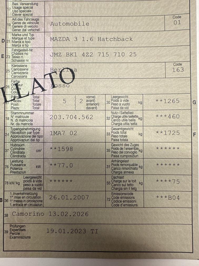 MAZDA 3 1.6 HATCHBACK