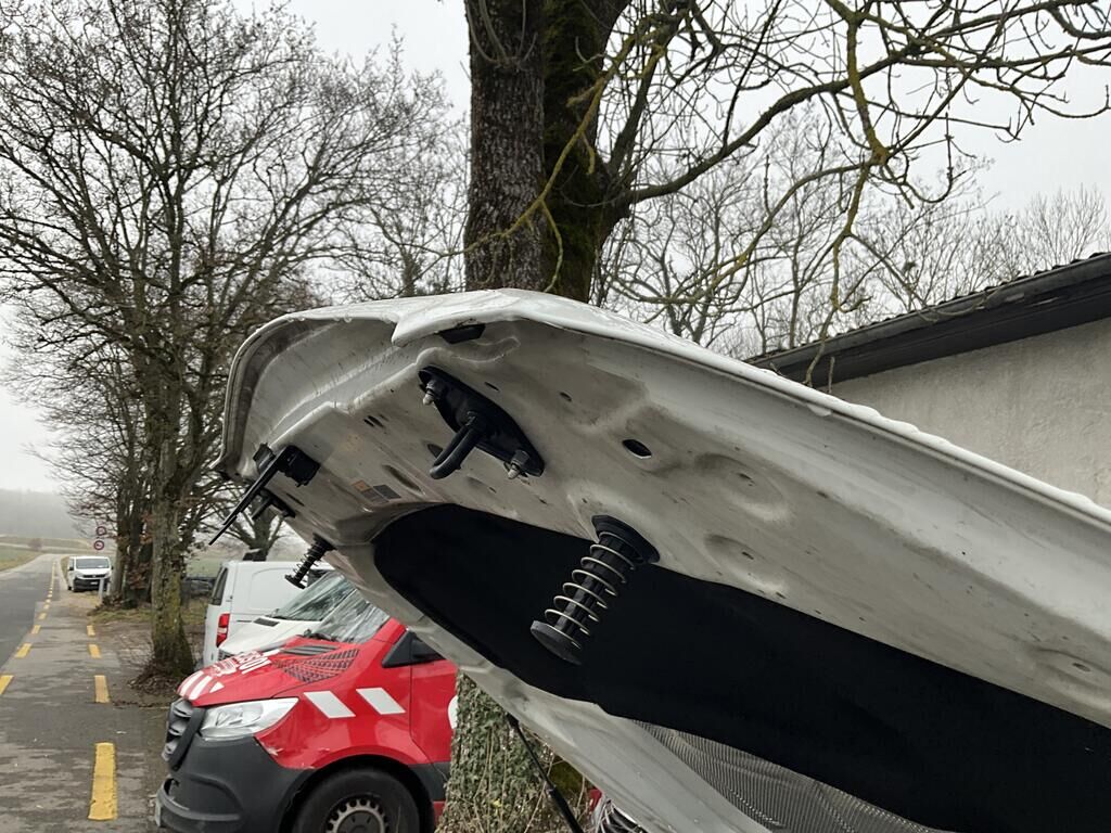 Capot, charnière de capot, aile AVG et AVD enfoncés. Pare chocs AV, calandre, phare AVG, convoyeur d'air endommagés. Protection de piétons déclenchés. Train AVG plié. Tourelle de suspension AVG enfoncée. Motor Getriebe Vorderachse Hinterachse Airbags ausgelöst: 0 unbekannt ( Abfallcode 16.01.04ak )