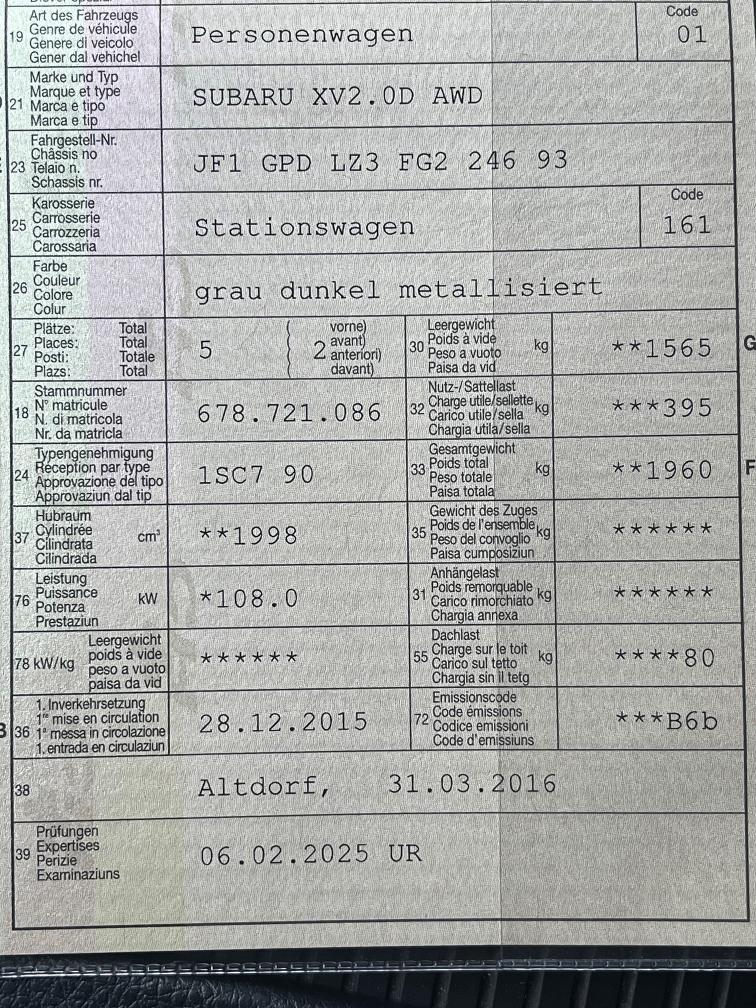 SUBARU XV2.0D AWD
