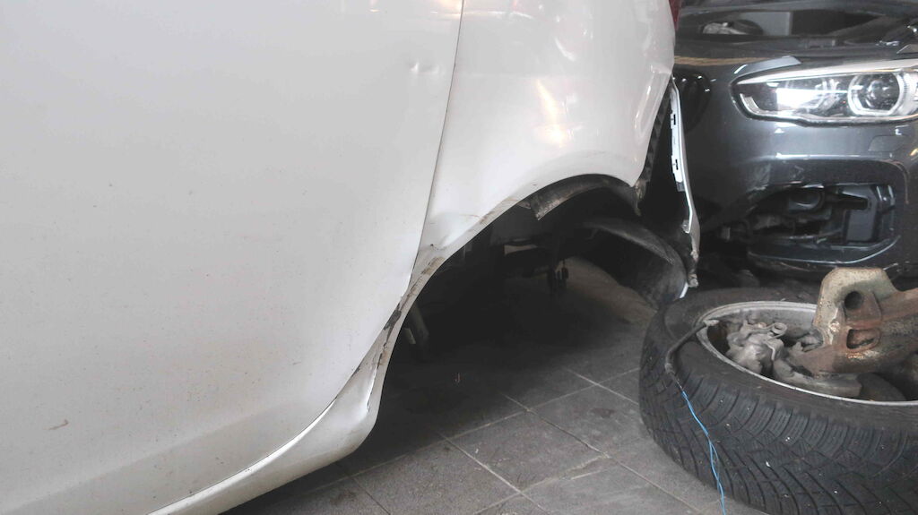 Pare-chocs, aile, porte et train arrière gauche endommagés. Motor Getriebe Vorderachse Hinterachse Airbags ausgelöst: 0 unbekannt ( Abfallcode 16.01.04ak )