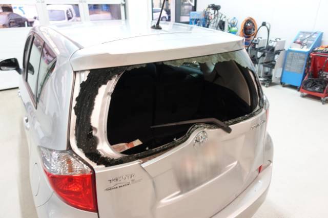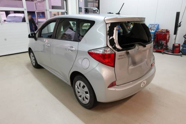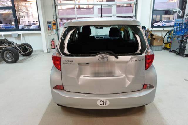 Beschreibung der Schäden: Heckklappe eingedrückt Stossstange hinten eingedrückt und zerkratzt, Heckscheibe verschlagen.