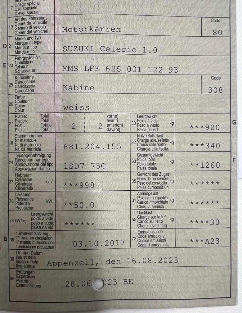 frisch ab MFK vorne zwei neue Pneu fährt 30km/h 2 Plätzer Hagelschaden Am Fahrzeug wurde kein Werkstatttest gemacht (für sichtbare oder nicht sichtbare Mängel wird nicht gehaftet). Wir haben nicht alle Funktionen vom Fahrzeug getestet und geprüft. Das Risiko liegt somit vollumfänglich beim Käufer. Nach erhalt des Zuschlags gibt es keine Nachverhandlung, auch wenn nicht deklarierte Mängel zum Vorschein kommen. Ab Platz ohne Garantie oder Gewährleistung, Wandelung und Minderung werden wegbedungen.