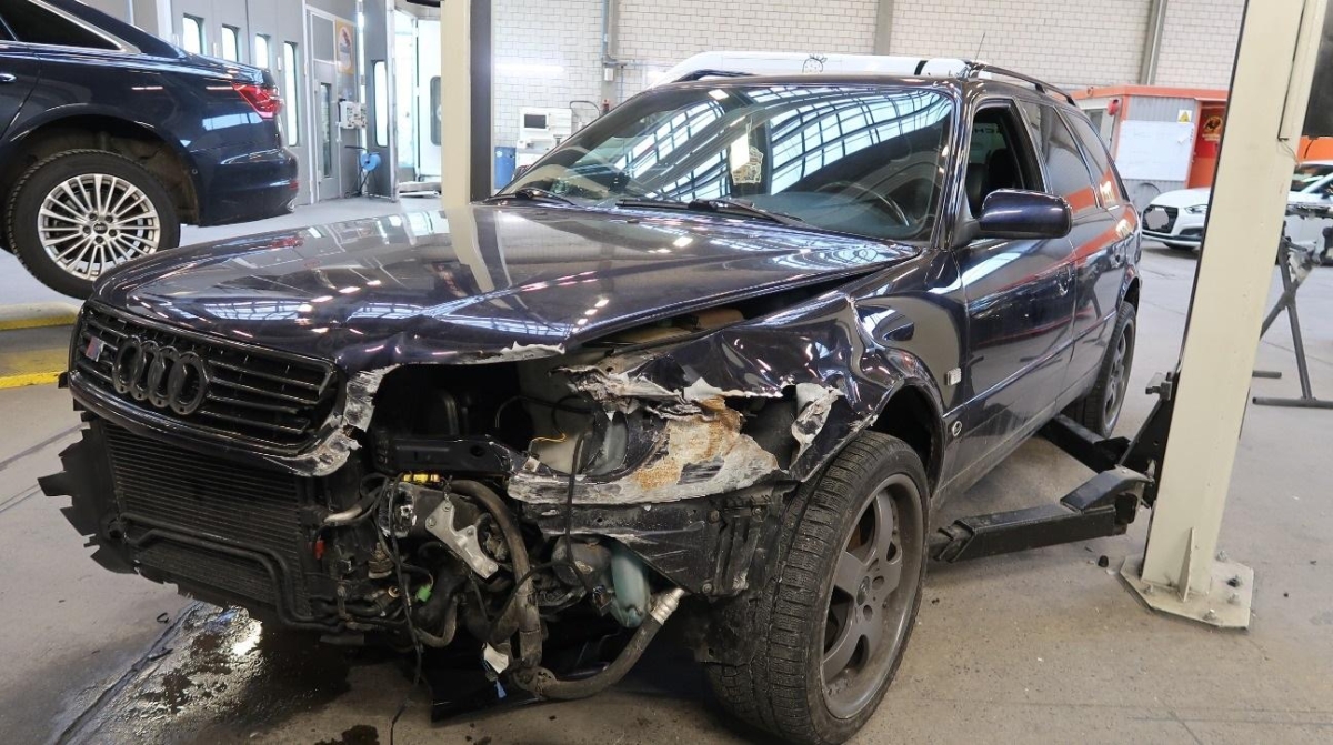Achsträger, Antrieb, Armaturenbrett, Auspuffanlage, Dach, Federbein vorne rechts, Frontscheibe, Heck, Interieur, Kofferraumboden, Längsträger hinten links, Längsträger hinten rechts, Radaufhängung hinten links, Radaufhängung hinten rechts, Radaufhängung vorne rechts, Radhaus hinten links, Radhaus hinten rechts, Rücklicht links, Rücklicht rechts, Schweller links, Schweller rechts, Seitenwand links, Seitenwand rechts, Stossstange hinten, Türe hinten links, Türe hinten rechts, Türe vorne rechts, Wagenboden