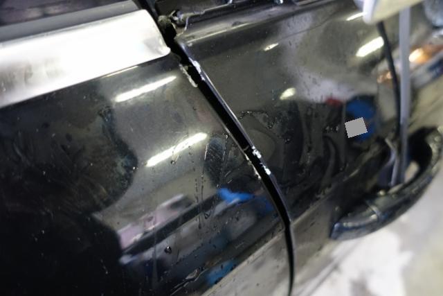 Tür vorne rechts ist eingedrückt. Tür hinten rechts ist eingedrückt.