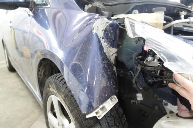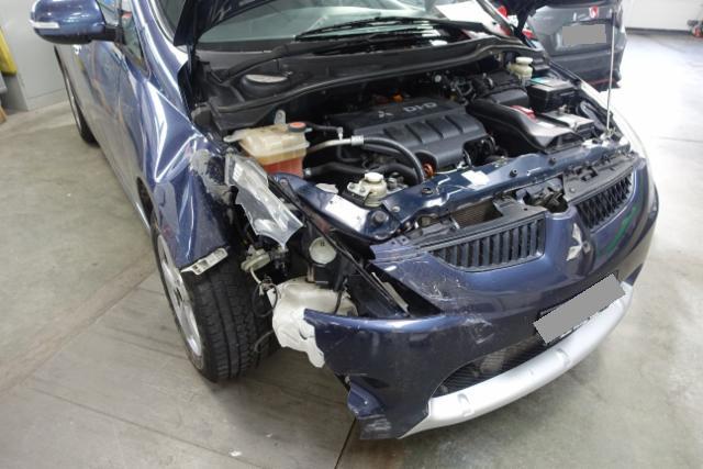 Front rechts eingedrückt. Kotflügel vorne rechts eingedrückt. Motorhaube eingedrückt. Frontblech/Maskenblech eingedrückt.