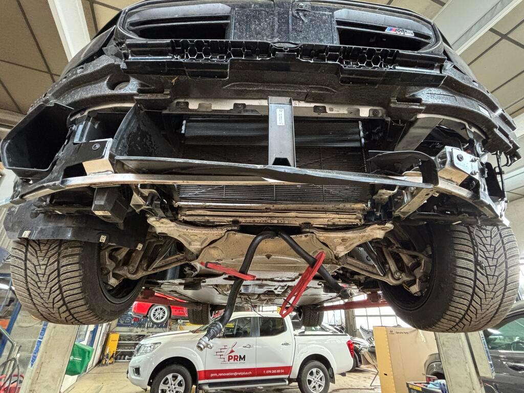 Collision frontale : Masque frontal, aile avant gauche, aile avant droit, grilles, radiateurs, direction, suspension avant droit et avant gauche, moteur, boîte à vitesses, pont arrière, échappements complet, bas de caisse gauche et droit, sous bassement cassés. Pare brise avant cassé. LISTE NON EXHAUSTIVE. / Remarques: Le conducteur a roulé 11km6 depuis l'accident selon test moteur BMW. Date de l'accident: 04.02.2026 20h34.34. Date de la panne: 04.02.2026 20h44.15. Lors de notre expertise plus d'huile moteur, plus d'huile boîte à vitesses, plus de liquide de refroidissement. / Préexistant traces d'utilisation