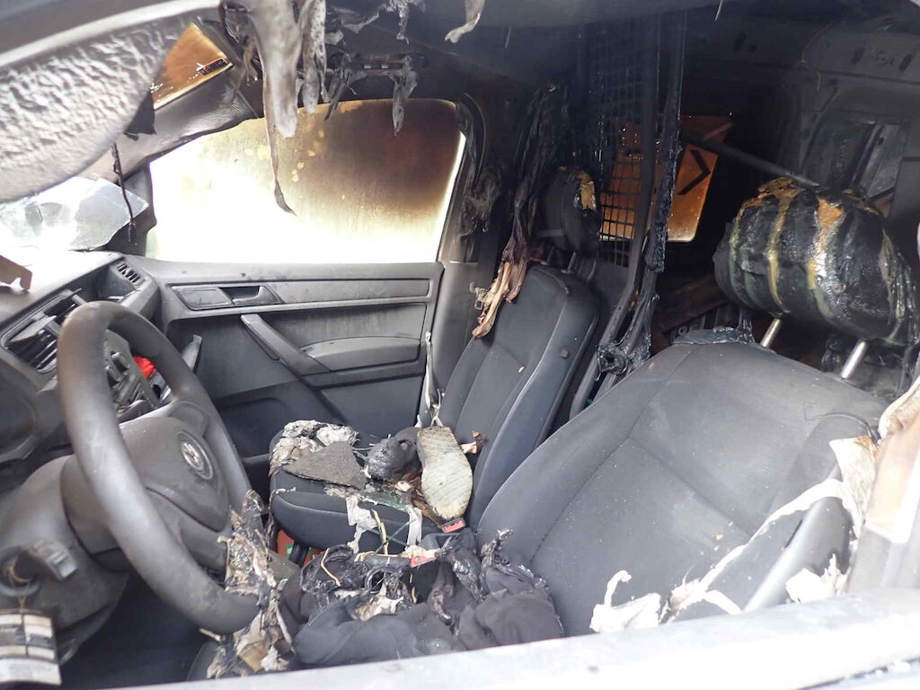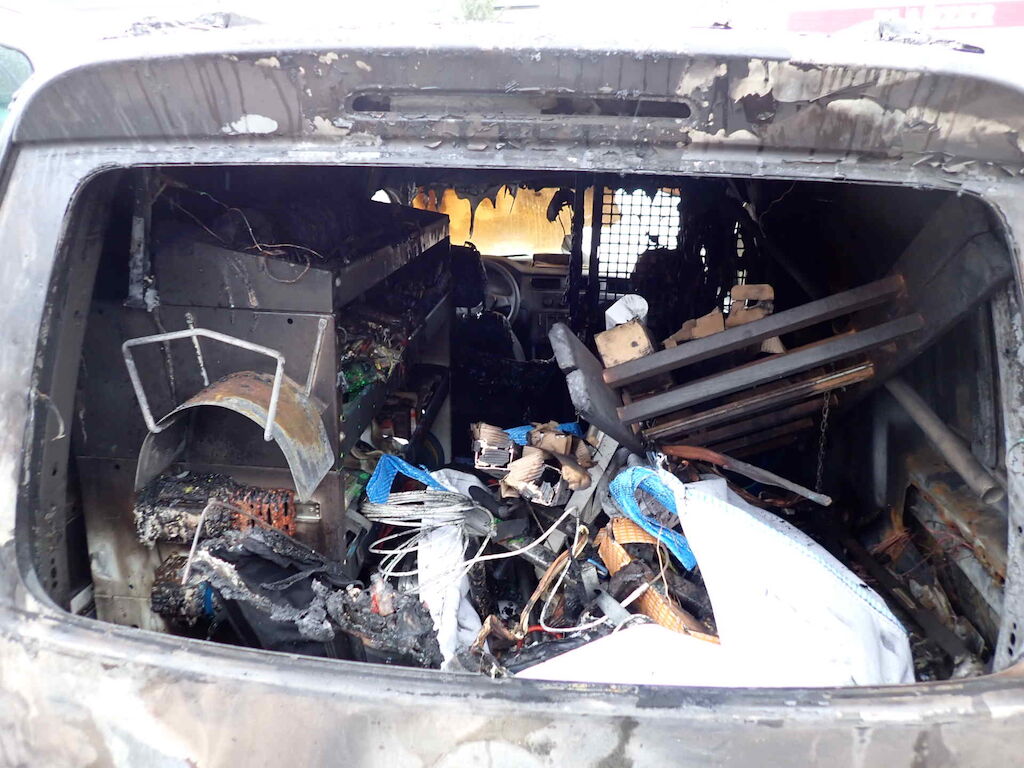 Brand im Heck des Fahrzeuges Motor Getriebe Vorderachse Hinterachse Airbags ausgelöst: 0 unbekannt ( Abfallcode 16.01.04ak )