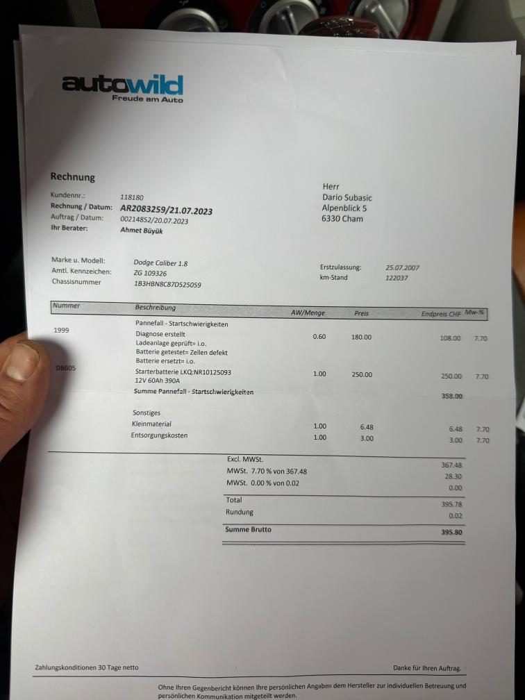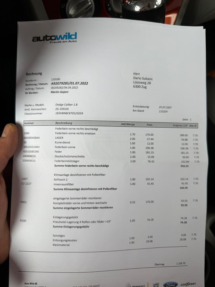 kurze Probefahrt gemacht alles Funktioniert. Fährt sich sehr schön. Stossdämpfer oder Lager vorne macht klack Geräusch beim fahren über Unebenheiten sonst alles ok Sehr viel Geld investiert in letzte Zeit, Rechnungen BEIGELEGT Macht sehr saubere Eindruck Karoserie hat Gebrauchtspuren wie auf dem Bilder ersichtlich ist Am Fahrzeug wurde kein Werkstatttest gemacht (Für sichtbare oder nicht sichtbare Mängel wird nicht gehaftet). Wir testen & kontrollieren nicht alle Funktionen des Fahrzeugs. Das Risiko liegt somit vollumfänglich beim Käufer. Ab Platz ohne Garantie, Wandelung und Minderung werden wegbedungen. Stossstange vorne zerkratzt, Nach erteilte Zuschlag muss Fahrzeug innerhalb 4 Arbeitstage abgeholt und Bar bezahlt werden. Sonst wird Parkplatz CHF 30.- / Tag verrechnet