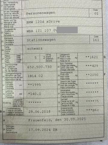 Klimaautomatik inkl. Mikrofilter Fahrer und Beifahrer-Airbag Seitenairbag für Fahrer und Beifahrer Radio BMW Professional Reifendruck-Kontrollsystem RDC Elektrische Fensterheber Aussenspiegel elektrisch verstellbar Regensensor Dynamische Stabilitäts-Control DSC Lederlenkrad Bordcomputer Uni-Lackierung Multifunktions-Lenkrad Kopfairbags vorne + hinten Dynamische Traktions-Control DTC Dieselpartikelfilter Armauflage vorn verschiebbar Lenksäule mit Höhen- und Längseinstellung Rücksitzlehne asymmetrisch geteilt umklappbar Digital audio DAB-Tuner ABS Antiblockiersystem inklusive Bremsassistent Interieurleisten Satinsilber matt Auto Start Stopp Funktion Freisprecheinrichtung mit USB-Schnittstelle Keine Gewähr auf die Angaben der Serienausstattungen ConnectedDrive Services Remote Services BMW Service Plus 10 Jahre/ 100'000 km