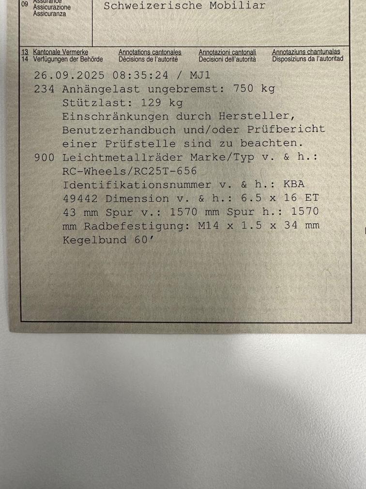 keine Werkstatt Prüfung gemacht - evt. Eintausch auf Neuwagen - Räder & Anhängerkupplung im Fahrzeugausweis eingetragen