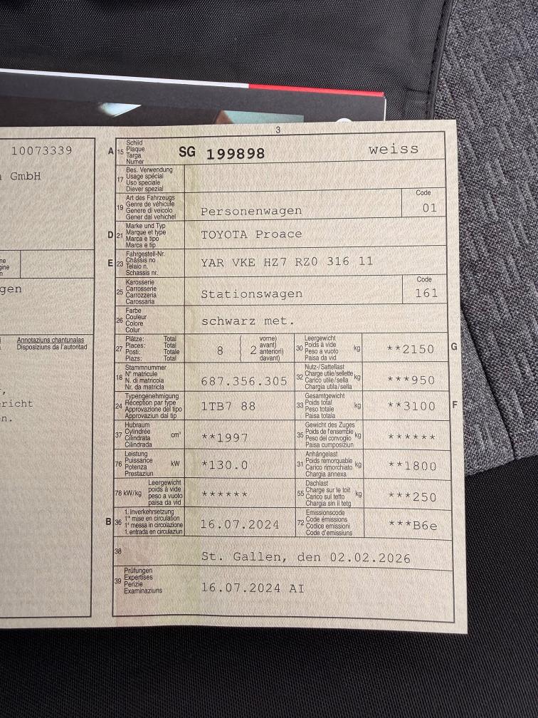 Sehr schönes, gepflegtes, neuwertiges Fahrzeug mit fortlaufender Werksgarantie von Toyota! 3er Sitzbank für 2. Fondsitzreihe aktuell ausgebaut, wird bei Verkauf mitgegeben. Sommerkomplettradsatz ebenfalls vorhanden. Am Fahrzeug wurde kein Werkstatttest gemacht (für sichtbare oder nicht sichtbare Mängel wird nicht gehaftet). Wir haben nicht alle Funktionen vom Fahrzeug getestet und geprüft. Das Risiko liegt somit vollumfänglich beim Käufer. Nach Erhalt des Zuschlags gibt es keine Nachverhandlung, auch wenn nicht deklarierte Mängel zum Vorschein kommen. Ab Platz ohne Garantie oder Gewährleistung, Wandelung und Minderung werden wegbedungen.