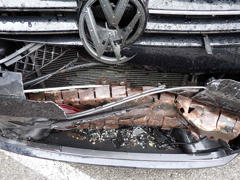 Pare-chocs AV, capot, phare AVG, aile AVG, renfort, bloc frontale et radiateurs endommagés Motor Getriebe Vorderachse Hinterachse Airbags ausgelöst: 0 unbekannt ( Abfallcode 16.01.04ak )