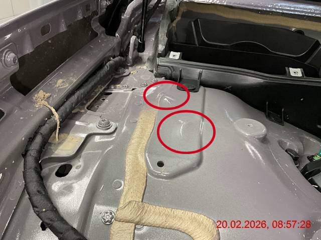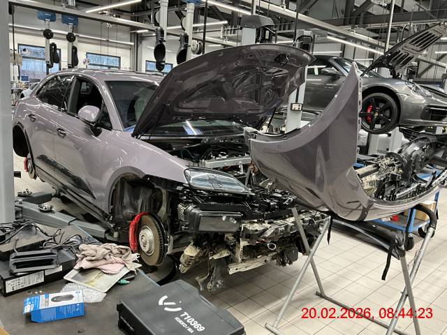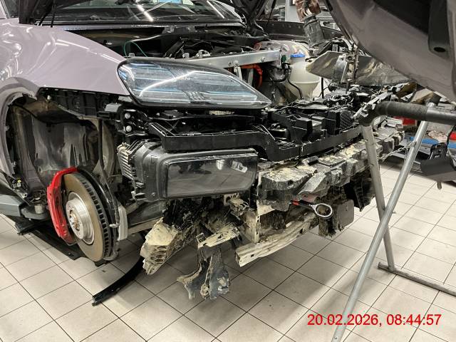 Front: Stossfänger vorne, diverse Sensoren, Abstandsradar, Kühlergrill, Scheinwerfer links und rechts, Schlossträger, Kühler, Motorraumstrebe, Kotflügel links und rechts, Federbeinaufnahme links und rechts, Unterbodenabdeckung, alle Felgen deformiert. Fahrwerk vorne links und rechts verschoben. Fehlermeldung Antriebsbatterie (Kühlung). Laut Fehlerauslesung Status Hochvoltbatterie "Normal". Vorderachse und Hinterachse voll mit Schlamm, Erde. Fahrzeug war nicht stromlos, jedoch "Ready" Kontrolleuchte erschien nicht beim Startvorgang, diverse Fehlermeldungen.