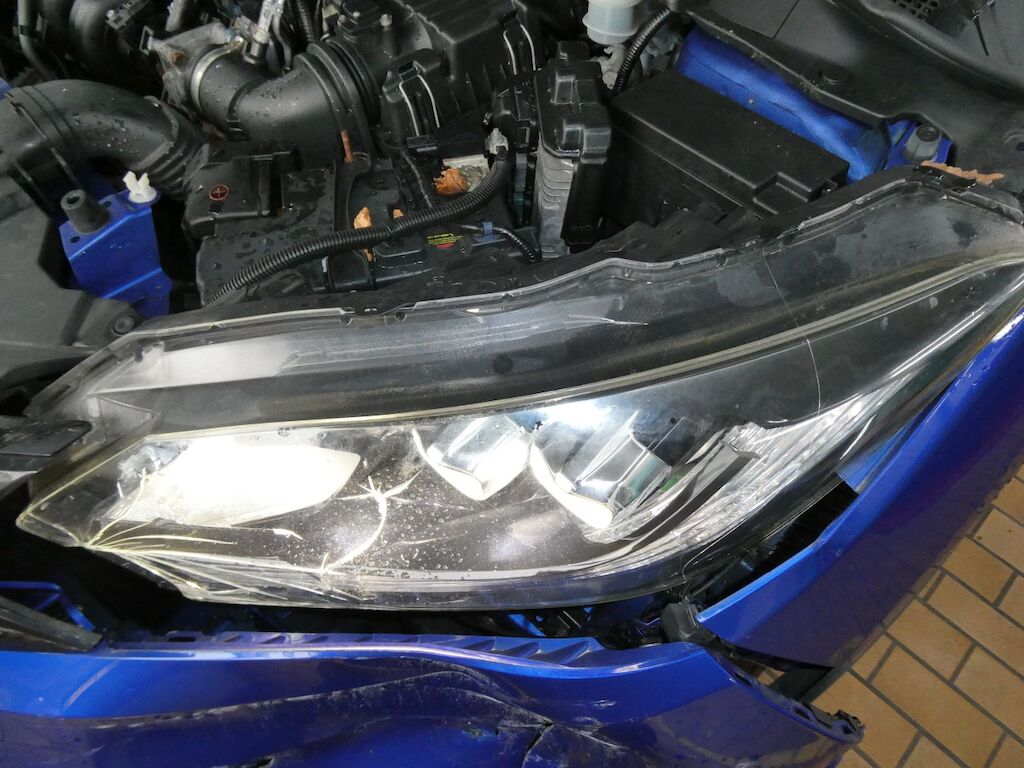 Stossfänger vorne, Kühlergrill, Prallbalken, Front, Haube, Scheinwerfer v.l., Nebellampe v.l. Kotflügel v.l., Türe v.l., Radhausverkleidung, Resonanzkörper von Luftansaug (Motor), Holmen v.l. Radhaus v.l. eingebeult und zerkratzt. Vorschaden: Stossfänger hinten, Türe v.r. eingebeult und zerkratzt und Gebrauchsspuren Motor Getriebe Vorderachse Hinterachse Airbags ausgelöst: 0 unbekannt ( Abfallcode 16.01.04ak )
