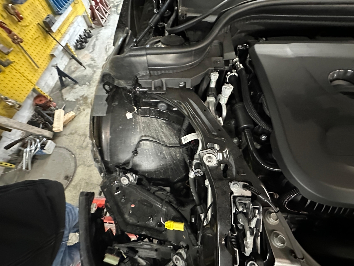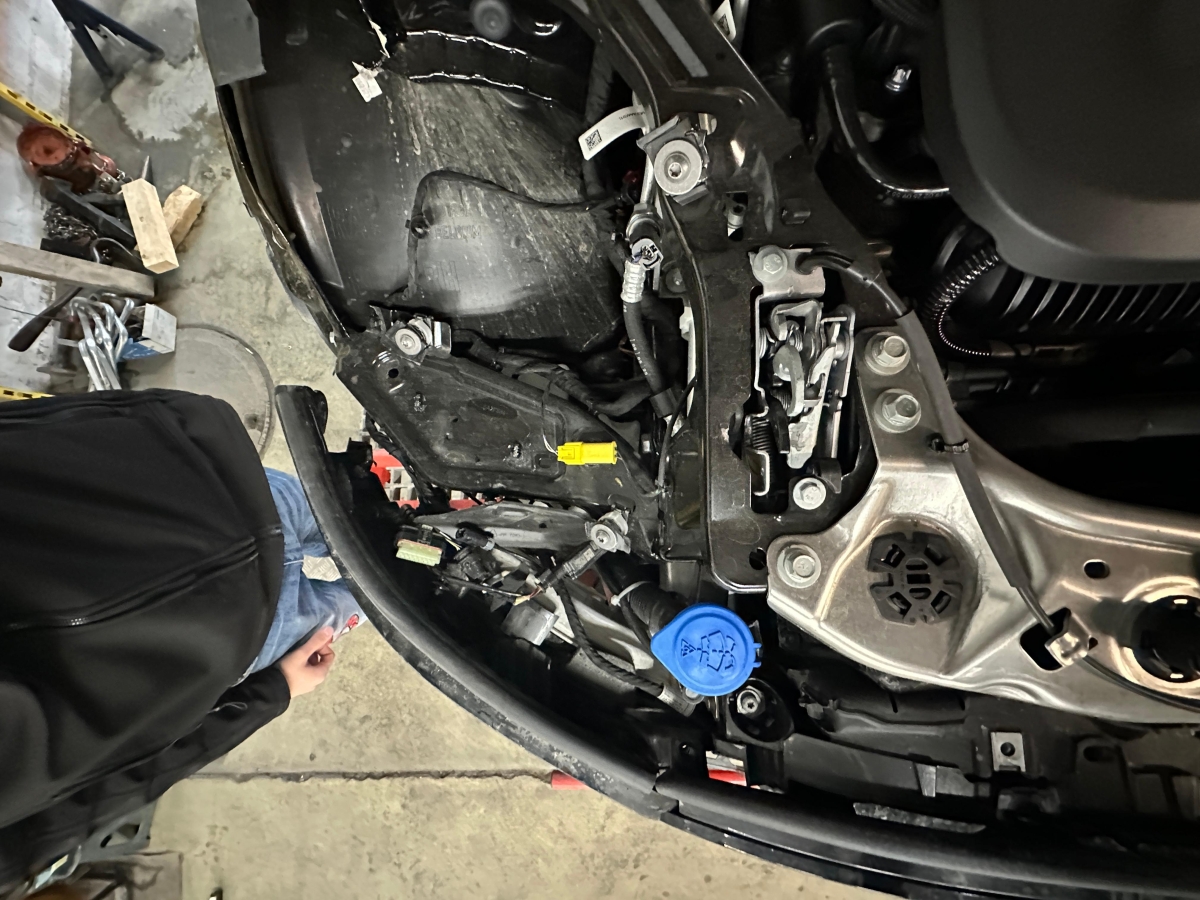 Federbein vorne rechts, Front rechts, Interieur verschmutzt, Kotflügel rechts, Kühlgitter, Lenkung, Längsträger vorne rechts, Motorhaube, Rad vorne rechts, Radaufhängung vorne rechts, Radhaus vorne rechts, Scheinwerfer rechts, Stosstange vorne, Vorderachse
