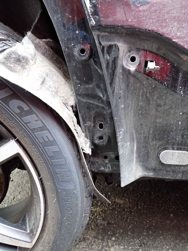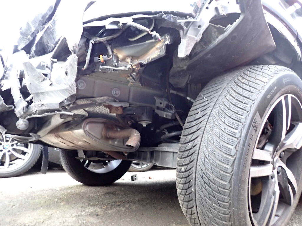 Coffre, pare-chocs AR, feu ARD, aile ARD, essieu ARD, échappement AR et tôle AR endommagésCapot, phare AVD, pare-chocs AVD, aile AVD, porte AVG et montant AVD endommagés