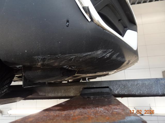 Stossstange Front gebrochen, Scheinwerfer vorne links muss ersetzt werden, diverse Teile sind unter dem Fahrzeug geschrubbt, Bodendeformation im Bereich der Verstärkungsstangenbefestigung hinten rechts verformt.