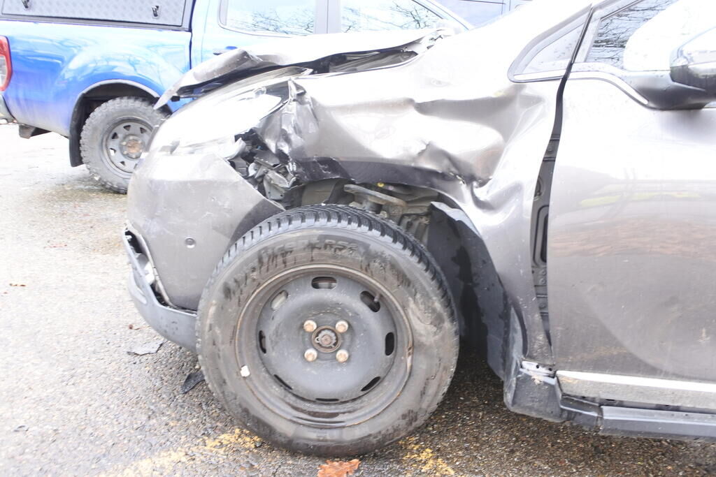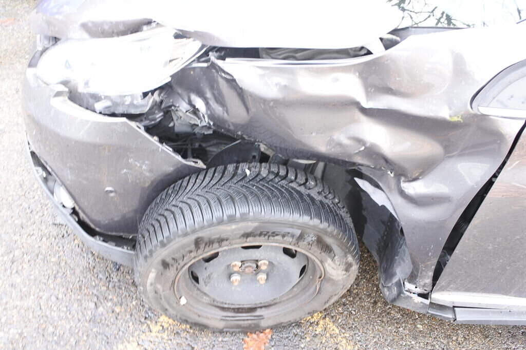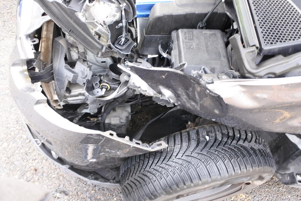Die Stossstange mit Anbau-Zier-Verstärkungs-und befestigungsteilen, der Scheinwerfer mit Brillenblech, die Motorhaube mit Scharnieren, der Kotflügel mit Auskleidung und Befestigungen, das Radhaus sowie die Spritzwand im Bereich der A-Seule inkl. der Felge und deren Aufhängung sind beschädigt. Der Wagenvorderbau ist nach rechts verschoben, Der Seiten - und Kopfairbag sowie der Gurtenstraffer links wurden ausgelöst. Weitere Schäden gehen aus den Fotos hervor. Motor Getriebe Vorderachse Hinterachse Airbags ausgelöst: 2 unbekannt ( Abfallcode 16.01.04ak )