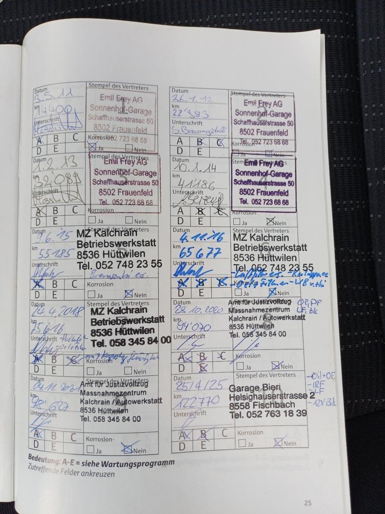 Carrosserieschaden rechts gemäss Fotos MFK fällig Letzte Wartung war bei 122'770 km im April 2025