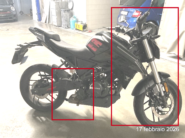 Beschreibung der Schäden: Urto frontale, deformazione delle parti meccaniche frontali e rivestimenti carenature. Rottura delle parti meccanche fianco destro. Il tutto come da foto. Preventivo indicativo / modello coparativo