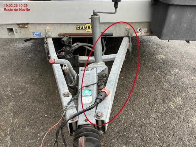 Châssis plié , fuite pompe hydraulique, traverse support de vérin tordu / Dommages préexistants: traces d'utilisation