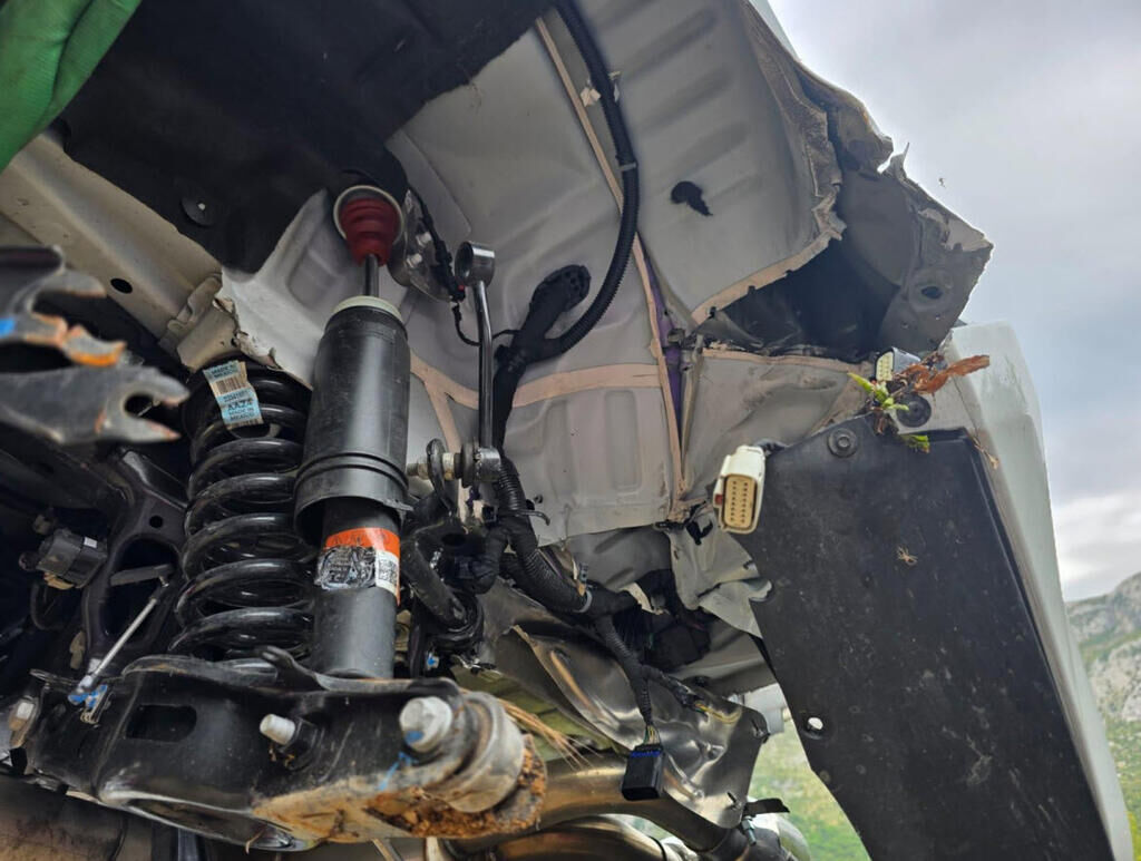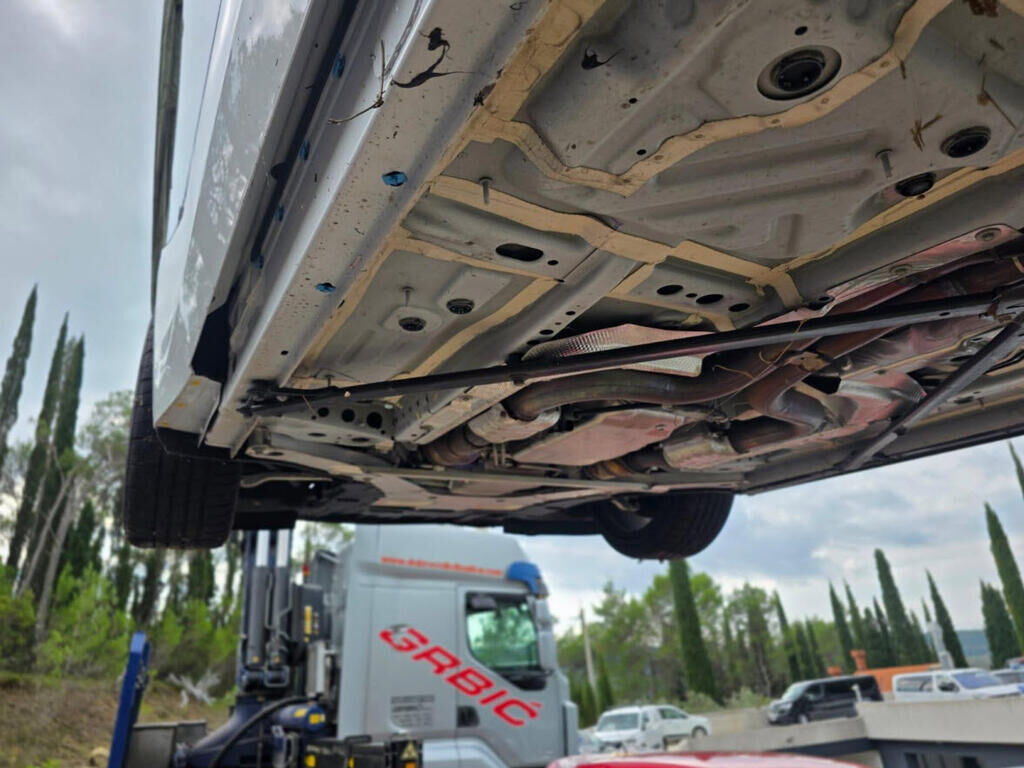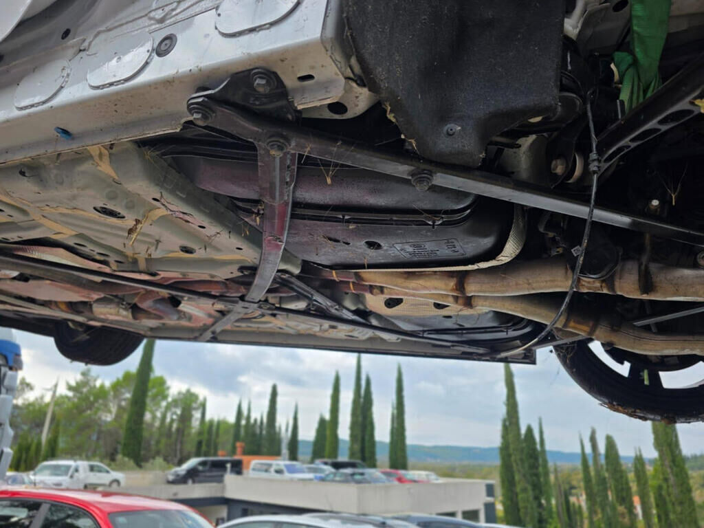 Hauptanprall - Seite links: - Aussenspiegel und Schwellerverkleidung links abgerissen - Türe und Seitenwand links deformiert - Radhaus links eingedrückt, teilweise eingerissen - Rad mit Radaufhängung HL abgerissen - Hinterachsträger und Radaufhängung HR beschädigt - Stossfänger abgerissen - Auspuffanlage beschädigt - Heck nach rechts deformiert - Risiko für weitere Beschädigungen Motor Getriebe Vorderachse Hinterachse Airbags ausgelöst: 0 unbekannt ( Abfallcode 16.01.04ak )